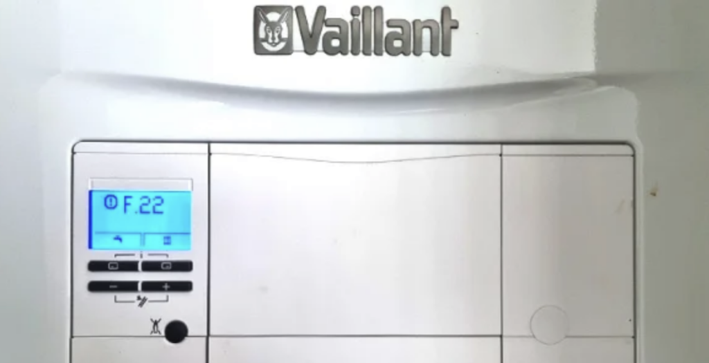 Las calderas Vaillant muestran los errores con el formato F.xx (por ejemplo F22, F28, F75), donde la letra F hace referencia a “fallo” y las dos cifras indican el tipo de avería. Se visualizan en la pantalla en lugar de la temperatura cuando el equipo entra en bloqueo de seguridad.